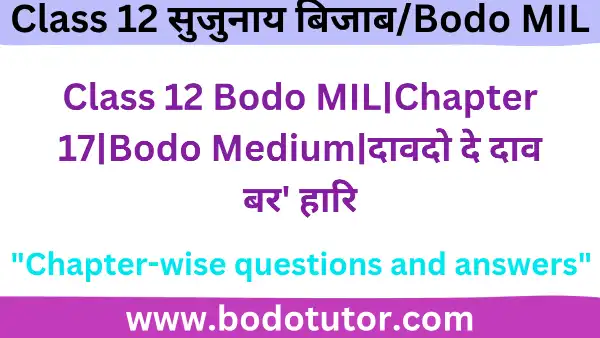 Class 12 Bodo MIL|Chapter 17|Bodo Medium|दावदो दे दाव बर’ हारि: Bodo Tutor is your trusted partner for AHSEC Class 12 Bodo MIL solutions in the Bodo medium. In this article, we provide comprehensive solutions for Class 12 Bodo MIL|Chapter 17|Bodo Medium|दावदो दे दाव बर’ हारि designed to align perfectly with the latest AHSEC syllabus. Our detailed and well-organized answers ensure students gain a clear understanding of the concepts, helping them excel in their exams. Whether you’re searching for AHSEC Class 12 Bodo MIL|Chapter 17|Bodo Medium|दावदो दे दाव बर’ हारि Solutions, HS Class 12 Bodo MIL Question-Answers, or resources for Bodo Medium studies, this guide caters to all your needs.