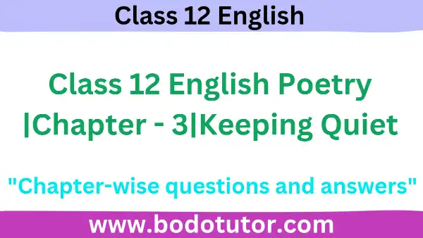Class 12 English Poetry |Chapter – 3|Keeping Quiet: Welcome to bodotutor.com ! Here you will get complete Class 12 English notes based on the AHSEC|ASSEB syllabus. We are starting with Class 12 Chapter – 3: Keeping Quiet, and we’ll continue to provide clear, easy-to-understand notes for every chapter to help you in your exams. Stay connected for regular updates and more study materials!