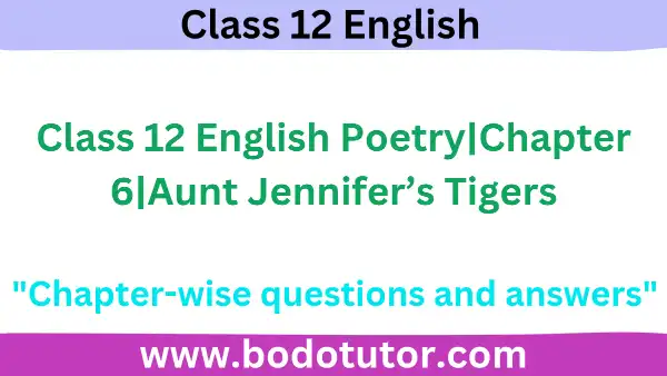 Class 12 English Poetry|Chapter 6|Aunt Jennifer’s Tigers: Welcome to bodotutor.com ! Here you will get complete Class 12 English notes based on the AHSEC|ASSEB syllabus. We are starting with Class 12 Chapter 6|Aunt Jennifer’s Tigers, and we’ll continue to provide clear, easy-to-understand notes for every chapter to help you in your exams. Stay connected for regular updates and more study materials!
